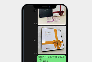 カタログギフトをスマホで撮影して「トーク」にて写真(または動画)を送ってください。