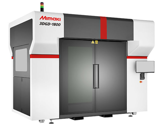 線状に押し出したジェル状の紫外線硬化樹脂に紫外線を照射させ、瞬時に硬化させ積層する方式がGDP方式です。ミマキエンジニアリングの3DGD-1800に搭載されており、大型の立体看板や造形サインが作成できます。最大造形サイズはW:1,450×D:1,110×H:1,800mmになります。