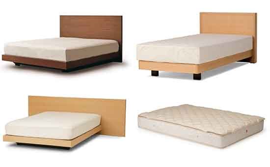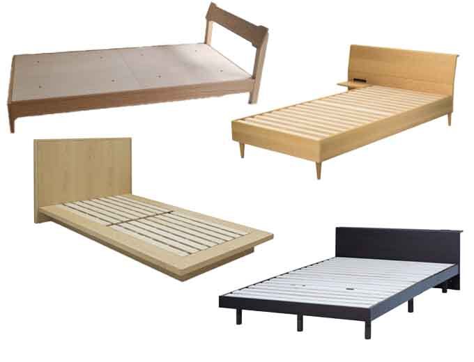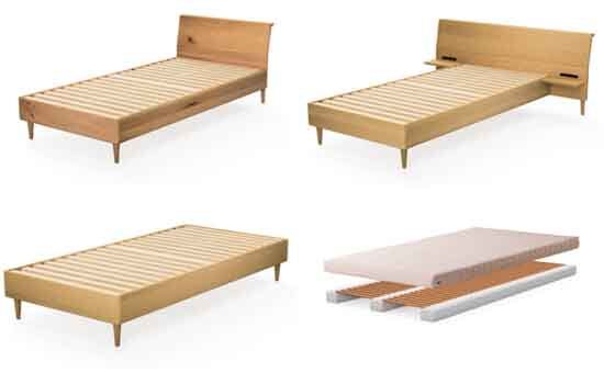 ベッドのマットレス部分を除けたフレーム部分を指したものです。ベッドフレームはヘッドボード、フットボード、サイドフレーム、床板の4つのパーツから構成されているものが多いです。各メーカーによって材質、デザイン、機能性にこだわりが込められています。