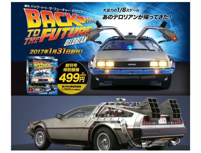 映画史上80年代で外すことのできない「バックトゥザフューチャー」のデアゴスティーニです。本物の金属を使用しており、本体重量は8kg、大ボリューム、大迫力の人気商品です。数々のギミックが精巧につくられています。
