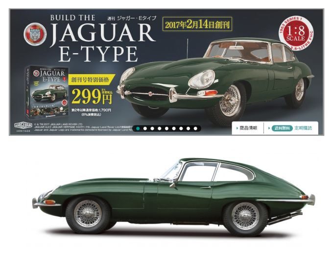 イギリスの高級車/ジャガーEタイプ(E-type )は、1961年から1975年にかけて販売したスポーツカーです。デアゴスティーニでは、THE JAGUSR STORY ジャガー・ストーリーレースのDNAから楽しめます。