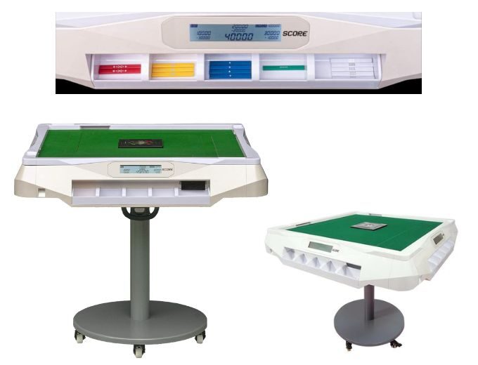 家庭用点数表示機能付全自動麻雀卓「Slim P+ SCORE/スリムプラススコア」です。「折りたたみ・移動式脚タイプ」、「テーブル脚&座卓脚セット」、2種類の脚タイプがあります。自分の順位が常時表示されるのも嬉しいですね。