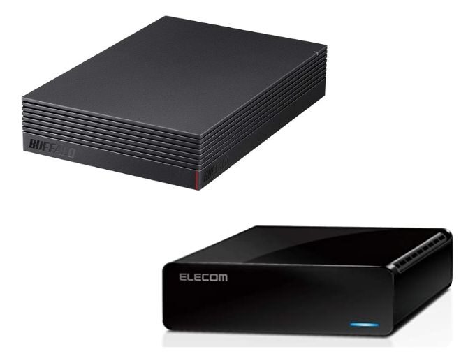 外付けハードディスクはバッファロー、エレコムが2大メーカーです。バッファロー HD-NRLD4.0U3-BA 4TB、エレコム/テレビ録画/パソコン対応ELD-FTV040UBKなど、どこでも目にする外付けハードディスクです。