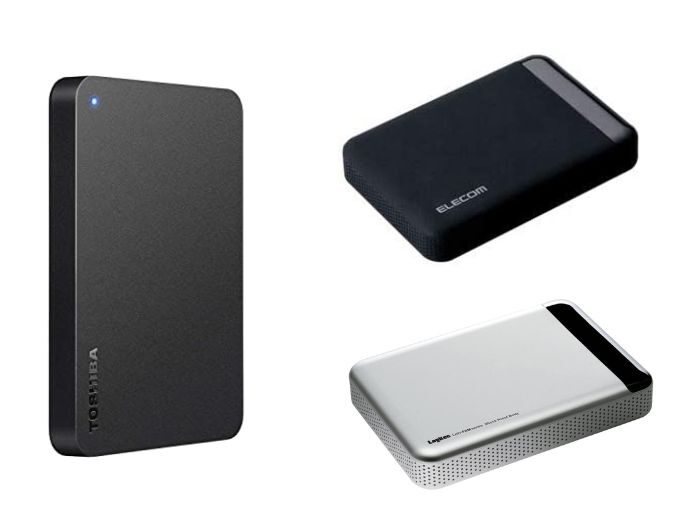 外付けハードディスクは、一般的に使われる据え置き型と、持ち運びに便利なポータブル型の2種類があります。ポータブル型は、コンパクトでも容量が増えてきたこと、また外部電源も必要ないなど人気が高い商品となっています。