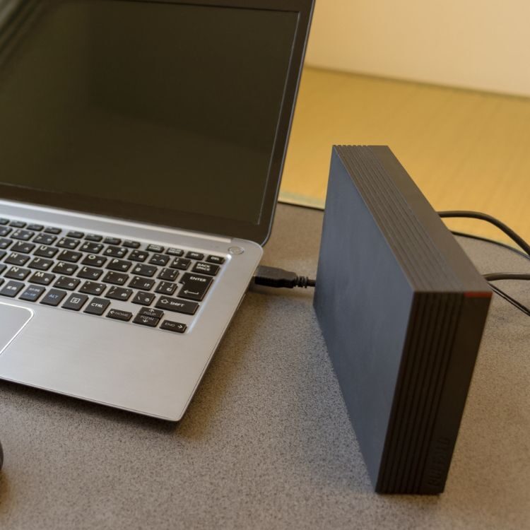 パソコンに内蔵されているハードディスクとは違い、保存用途に使う外付けハードディスクです。パソコンの容量が足りなくなったときに、USBケーブルでつなぎデータを移行することでPC容量を減らすことができます。