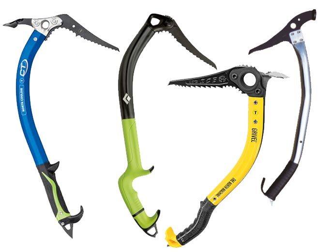 氷壁のクライミング時に使用されるのがアイスクライミング用のピッケルです。柄の部分は短めに設計されており、氷に刺しやすく抜けにくい様に設計されています。柄の部分を短くしキツめにしたカーブがそのような作用を起こすのです。