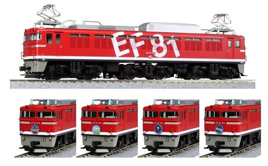 KATO HOゲージ EF81 95 レインボー塗装機です。手スリなどボディ色に合わせたグレードアップパーツが設定され、あけぼの・エルム・カシオペア・北斗星のヘッドマークが付属します。
