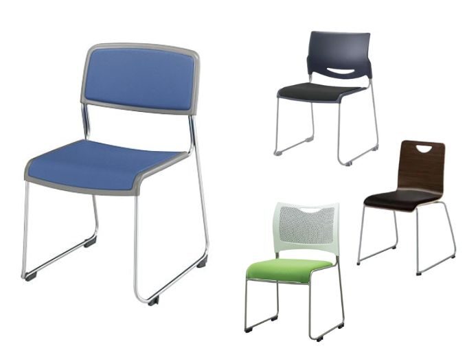 会議室でよく見かける、スタッキングチェア、ネスティングチェアです。コクヨの会議用イス CK-890シリーズ 、ウチダ/ミーティングチェアMP-110、アイリスチトセ/MCX-DM-GNなどがあります。