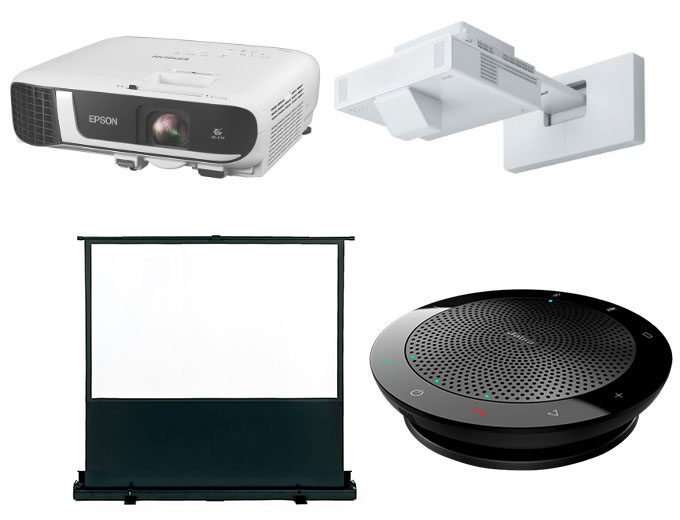 プレゼン時に便利なのがプロジェクターやスクリーンです。またリモートワークが浸透しつつある現代では、TV会議用に使用できるマイクやヘッドフォンなども必要アイテムとなりつつあります。
