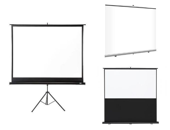 プロジェクタースクリーンは、脚付きや床置きタイプも人気!!