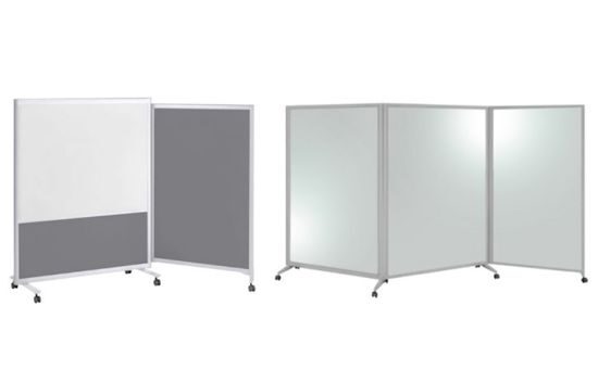 また、オフィスのパーテーションは、スペースを分けることで作業効率のアップに使われます。ローパーテーションや折りたたみ式、飛沫防止のためのアクリルパーテーション、ホワイトボード機能のついたパーテーションと、幅広い種類があります。