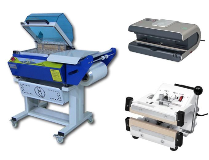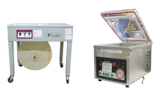 業務用では、日本包装機械の半自動シュリンク「DIBIPACK 3246」「DIBIPACK ESPERT5040 EV」卓上タイプでは石崎電気製作所の卓上ハイパワーシーラー NL202JW10、朝日産業の真空パックロボなどです。
