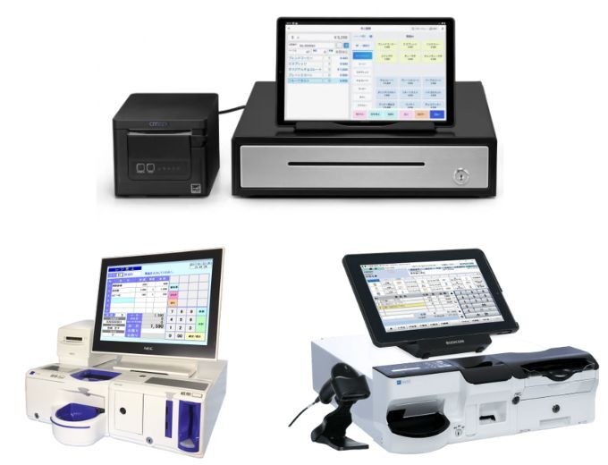レジスターは大きく4つの種類に分けられます。一つ目は、飲食店や小売店などに使われる業務用のレジスターです。