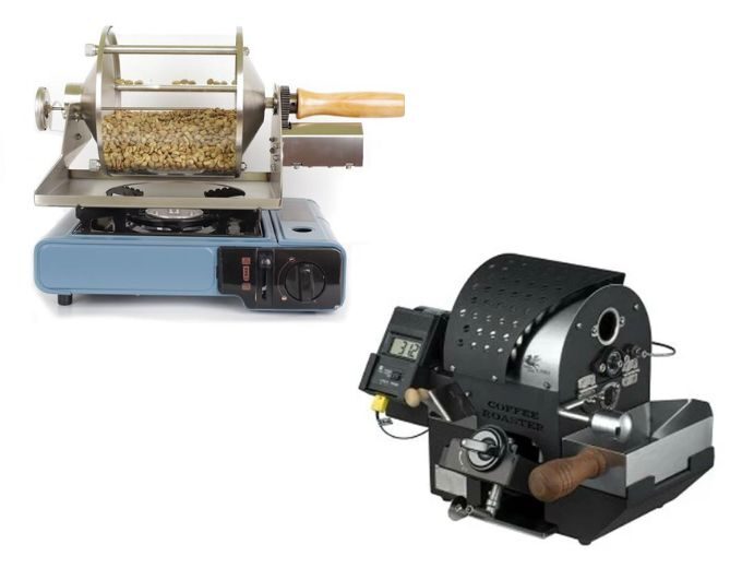 コーヒー豆焙煎機はコーヒーには欠かせない機械です。コーヒーの生豆を焙煎(ロースト)し熱を加えることで、お店でよく見るコーヒー豆になります。