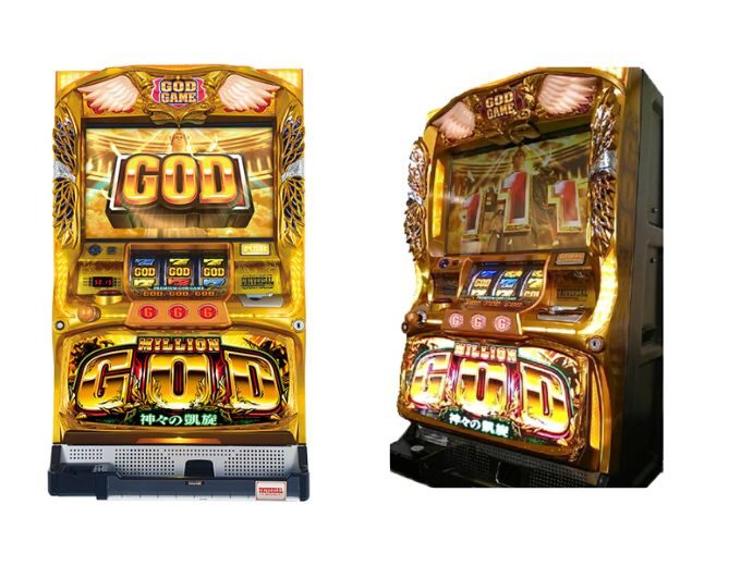 2015年4月6日に導入が開始された「ユニバーサル ミリオンゴッド-神々の凱旋」です。『ミリオンゴッド』シリーズとしては7機種目の人気モデルです。ユニバーサルエンターテインメント発売のパチスロ5号機となります。
