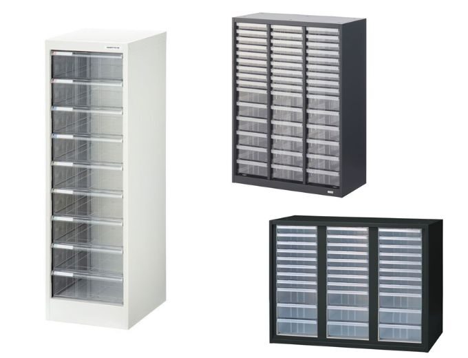 国内シェアNo.1のコクヨの製品は、キャビネット/保管庫深型シリーズ S-D3625F1N3・EDIA(エディア)シリーズ BWU-HD259DSAWN・エディア(EDIA) スタンダード 5段ラテラル 下置き書庫BWU-L5A58SSAWN、BWU-S89SAWN。ロッカーは施錠方法や人数タイプのバリエーションが豊富で、LKロッカー LK-N2SAW、スクールロッカーハイタイプSLK-HT12KSAW・ロータイプSLK-HY6KSAWなどがあります。