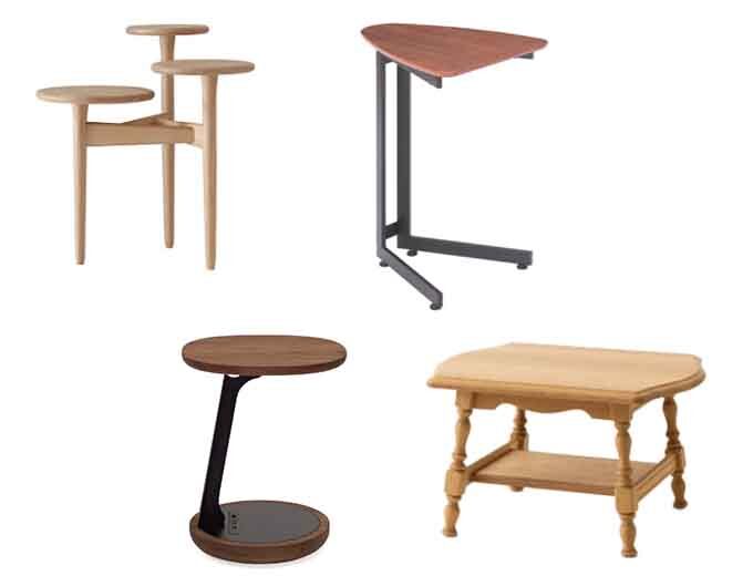 ソファやイスの脇に置いて補助的に使用するサイドテーブル