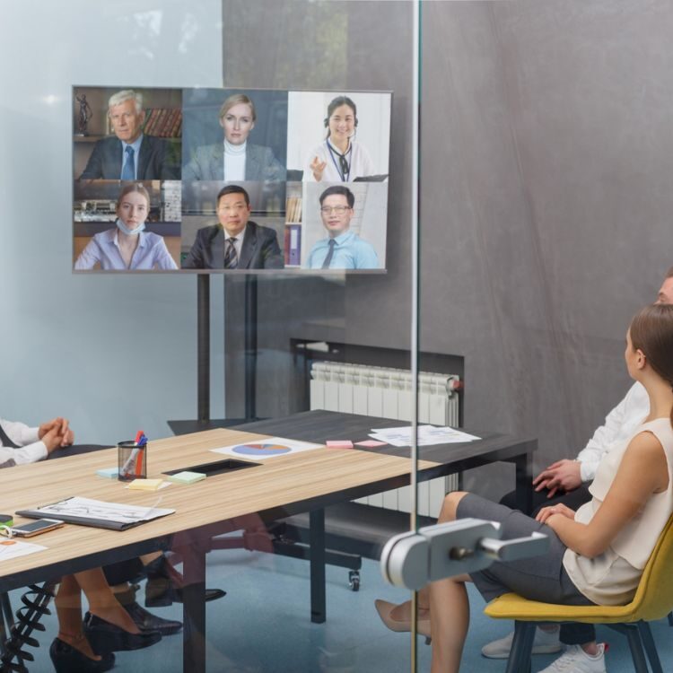 テレビ会議システム(ビデオ会議システム)は、海外を交えての複数拠点がある場合や、経営会議、大人数が集まる場での映像共有などの目的で使用されることが多いツールです。 一般的なWeb会議と比べ、映像や音声の品質が優れており、接続の安定性も高いことから、 医療現場などでの利用にも使われています。