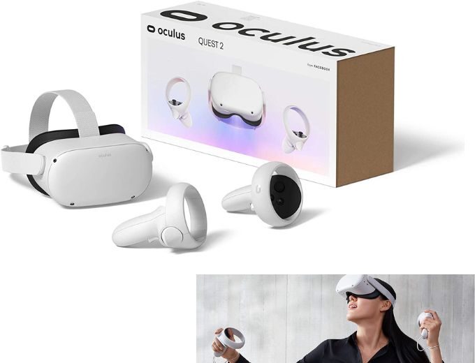 FacebookがMeta社となり、Meta社から販売されるQuest 2 128GB・64GBです。ワイヤレスのオールインワンVRヘッドセット(ワイヤレスVR)の仕様で、スマホのアプリでセットアップするだけの簡単セットアップも魅力です。
