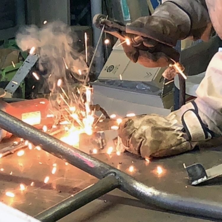 また、溶接方法も2通りあり、通常の溶接と、半自動溶接があります。高度な職人の技術を要する溶接に対し、半自動溶接は溶接ワイヤーを溶接トーチにローラーで送り出し、母材とワイヤーを連続して溶接することができます。