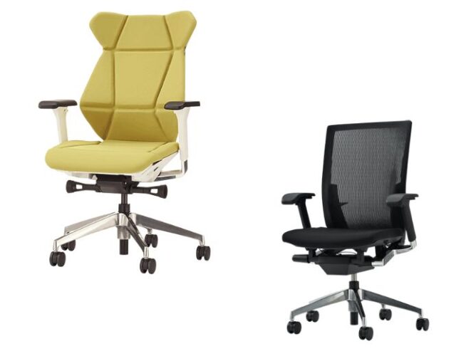 OKAMURA/オカムラのオフィスチェアは、ITALDESIGN/イタルデザインとコラボしたシリーズ「コンテッサセコンダ」「フィノラ」「バロン」、オールラウンドモデルの「スフィア」「シルフィー」「フルーエント」などがあります。事務機器で有名なKOKUYO/コクヨは、最上位モデルのINSPINEインスパイン、Bezelベゼル、ingイング、FABREファブレ、PUNTOプント、可能式のメモ台を備えたAll in Oneオールインワン、などのラインナップがあります。