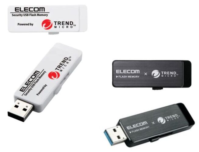 ELECOM/エレコムでは、USBメモリ セキュリティ機能 ウイルス対策機能付き トレンドマイクロ版 管理ソフト対応 USB3.0・ セキュリティUSBメモリ32GB MF-TRU332GBKto・指紋認証付きセキュリティUSBメモリ/64GB MF-FPU3064GBK、などがあります。