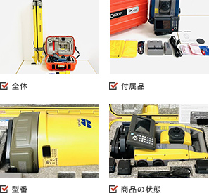 写真の送付とともに、メーカー、型式が分かる箇所(表示箇所が不明な場合は「型式不明」と記載ください)、商品名称(例:測量機器等)、商品の状態、お住まいの都道府県、希望買取方法(出張、店頭、宅配)を添えてメッセージを送信ください。