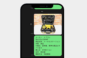 トータルステーション・測量機器などの品物をスマホで撮影して「トーク」にて写真(まはた動画)を送ってください。
